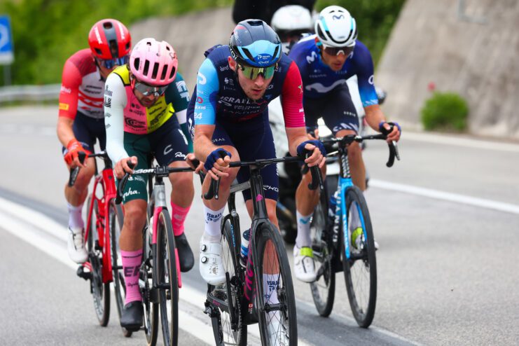 When Ben Healy attacked on the first ascent of the Cappuccini, Gee continued to tackle the steep gradient at his own pace and crossed the summit around 30 seconds behind. On the next climb, an attack from Barguil and Verona split the group and Gee dug deep to find himself in the first chase group.