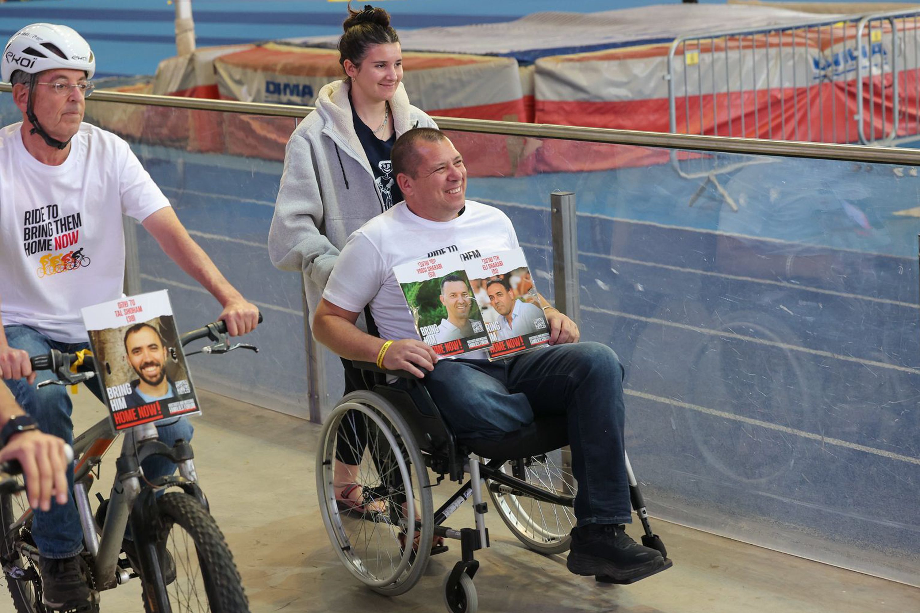 In Tel Aviv, the Sylvan Adams National Velodrome saw 136 riders ride the track, including 12-year-old Erez Kalderon, who was captured as a hostage on 7 October along with his sister Sahar and father Ofer, and released with his sister after 51 days in captivity; and cyclist Avida Bachar, who lost a leg in the 7 October attack when his wife and son were killed, and completed the route in a wheelchair.